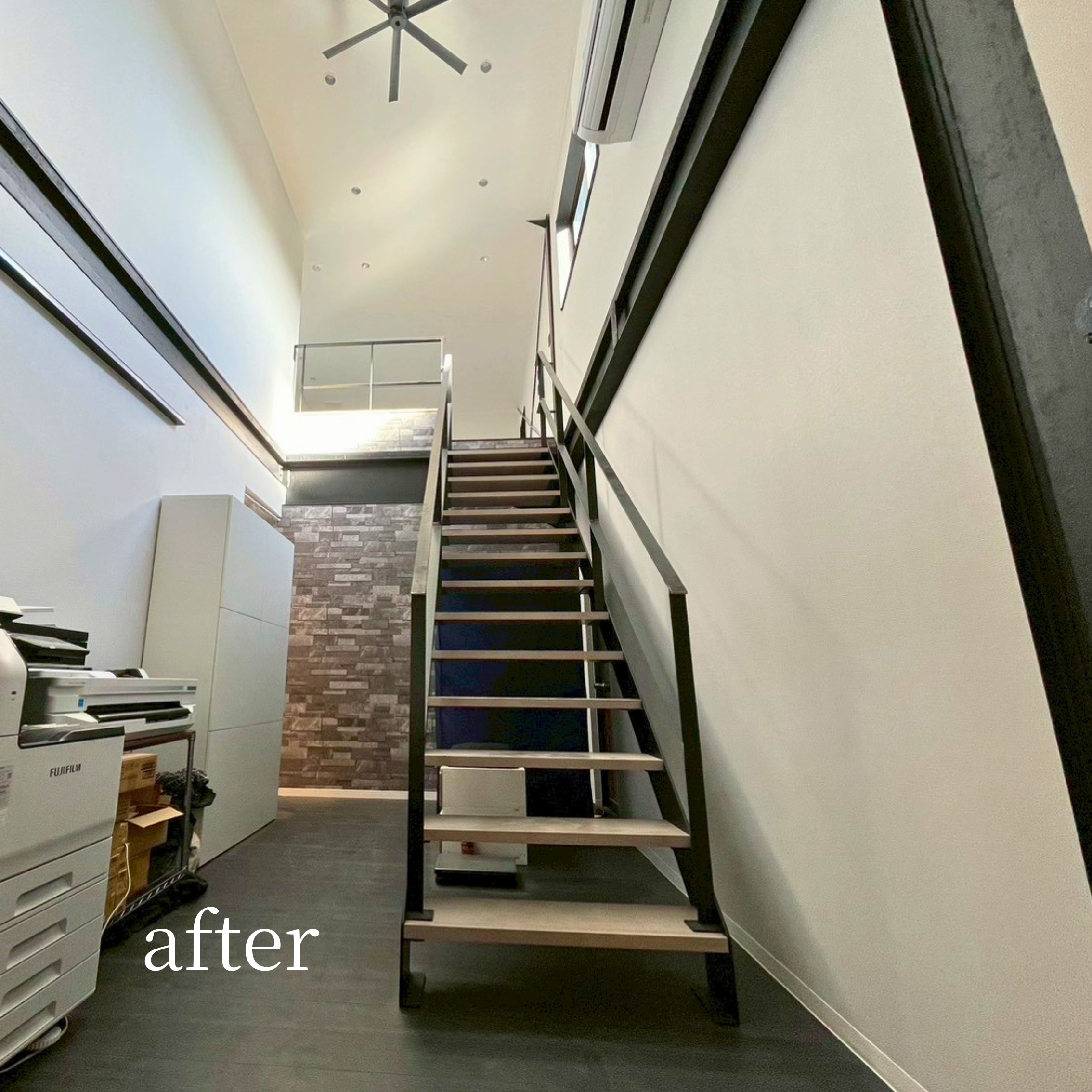 ✴モチベーションをデザインする ホテルライクな清潔感と、鉄骨の無骨さを融合させたインダストリアルモダンな空間。出社した瞬間に背筋が伸びるような、誇りを持てる職場へ。